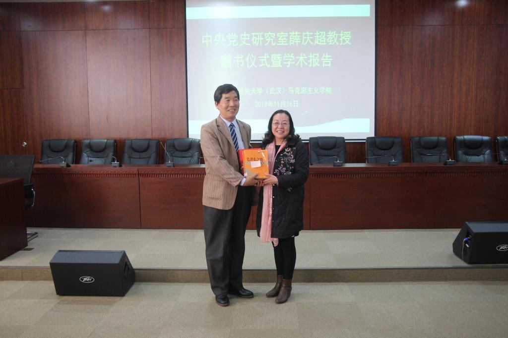 2018年11月26日下午14:30,中共党史研究室薛庆超教授赠书仪式在东区教学综合楼A708举行,仪式结束后薛庆超教授又做了两场学术报告 。报告由阮一帆教授主持,beat365院长高翔莲,其他教师、研究生及本科生到现场参加了学习交流。