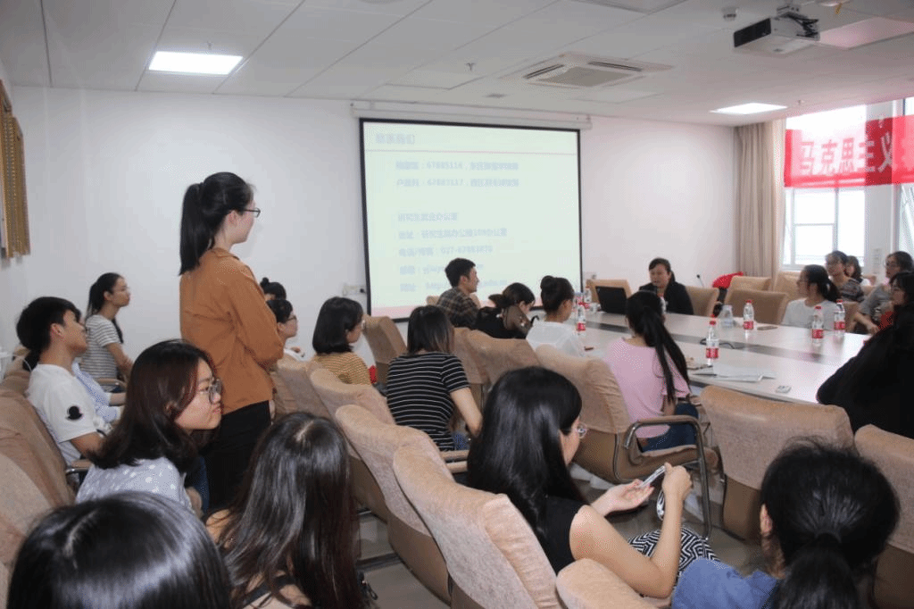 研工部张健老师结合毕业生就业政策、就业派遣、户口档案去向等毕业生相关事宜为与会研究生进行了详细解读。同时,张老师也针对低年级研究生如何做好就业准备提出建议,并鼓励广大研究生认清就业形势,积极参与就业实践。随后张老师就同学们关心的就业派遣、户口档案迁移和改派等问题与同学们进行交流。