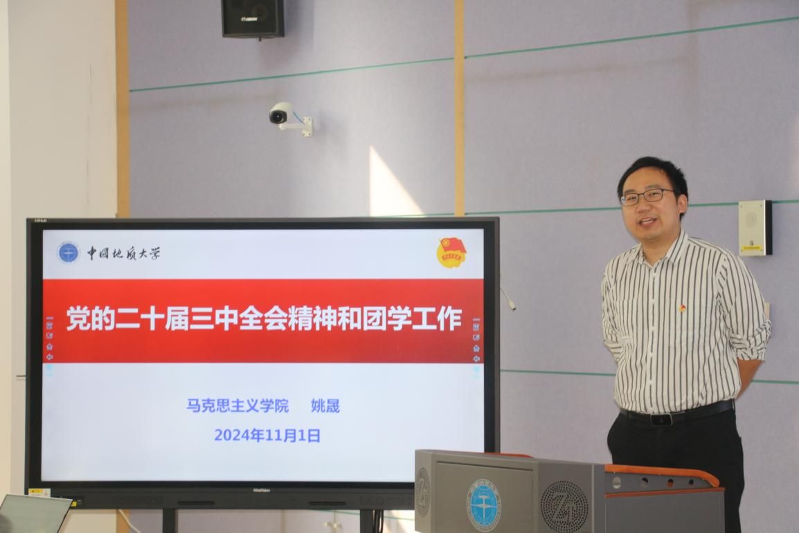 接着,由beat365团委书记姚晟为同学们讲解“青年骨干的本职工作和团学工作”。在这一部分,他带领同学们深入学习了党的二十大三中全会精神并用以指导同学们深入理解团学工作改革的重要地位和意义。姚老师强调,作为团学工作的重要主体,青年学生骨干被赋予了重大使命,承担着组织制度建设、推动部门持续发展的重大责任。此外,他还向同学们分享了自己的团学工作生涯,讲述了自己在这段经历中的成长与收获。他讲到,自己做学生工作是源自于对团队的不舍和对继续提升的执念,是源自于找到学习之外的另一份价值,是源自于对成就更好未来自己的沉淀与积累。讲解最后,姚老师指出,“一名优秀的干部,要针对性熟悉工作,抓好服务同学的载体和阵地;要全方位深入同学,做好各类信息的;多角度整合资源,提升工作实践的效率;进一步干净纯洁,展现学生骨干的作风与担当。”