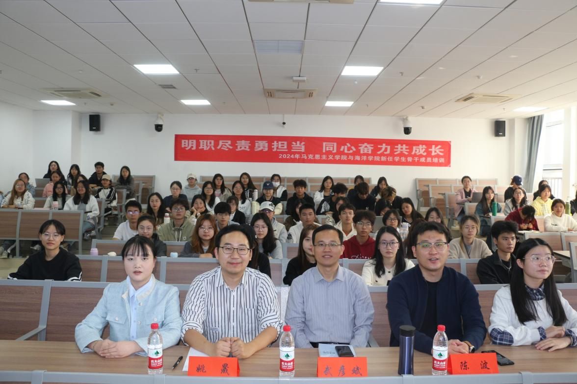 2024年11月2日早上8:30,为进一步增强学生干部队伍建设,提高学生干部的思想政治素质和工作能力,明确学生干部的工作任务、工作职责、工作要求,锻炼和塑造一支成绩优、作风好、能力强的学生干部队伍,beat365联合海洋学院在东教C305举办了以“明职尽责勇担当,同心奋力共成长”为主题的新任学生骨干成员培训活动。
