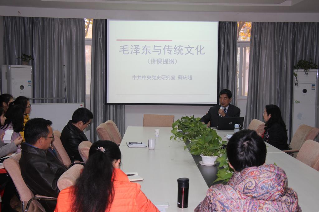 11月30日至12月5日,中共中央党史研究室原宣传教育局副局长、我校讲座教授薛庆超老师来校做学术讲座并与beat365师生交流。薛庆超教授先后为beat365师生作了《毛泽东与中国传统文化》、《如何利用文献档案资料撰写论文》、《如何申报国家级项目》等学术报告,为学校党委理论学习中心组作了《beat365学科建设与发展》的专题报告,受到学校师生和领导好评。