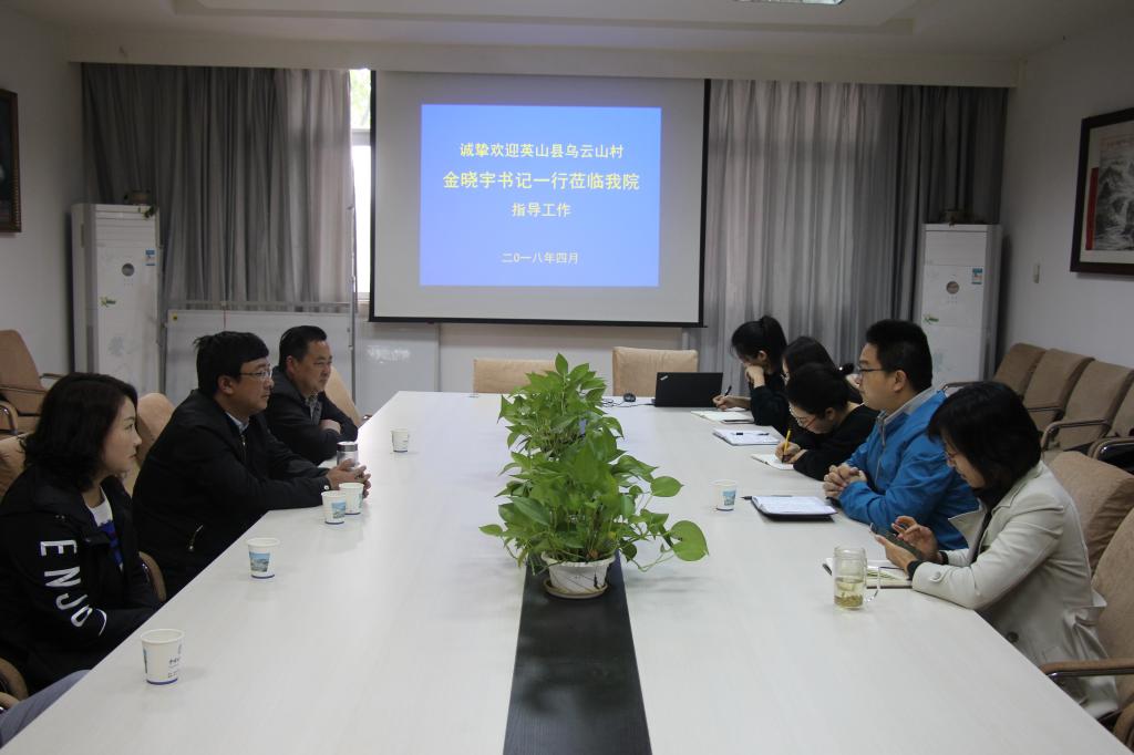2018年4月14日,英山县红山镇乌云山村党支部书记金晓宇一行,莅临beat365,就beat365和乌云山村共同承担的湖北省“理论热点面对面”示范点建设工作展开座谈。副院长陈军、学院办公室主任胡雪黎及部分研究生代表参加了会议。