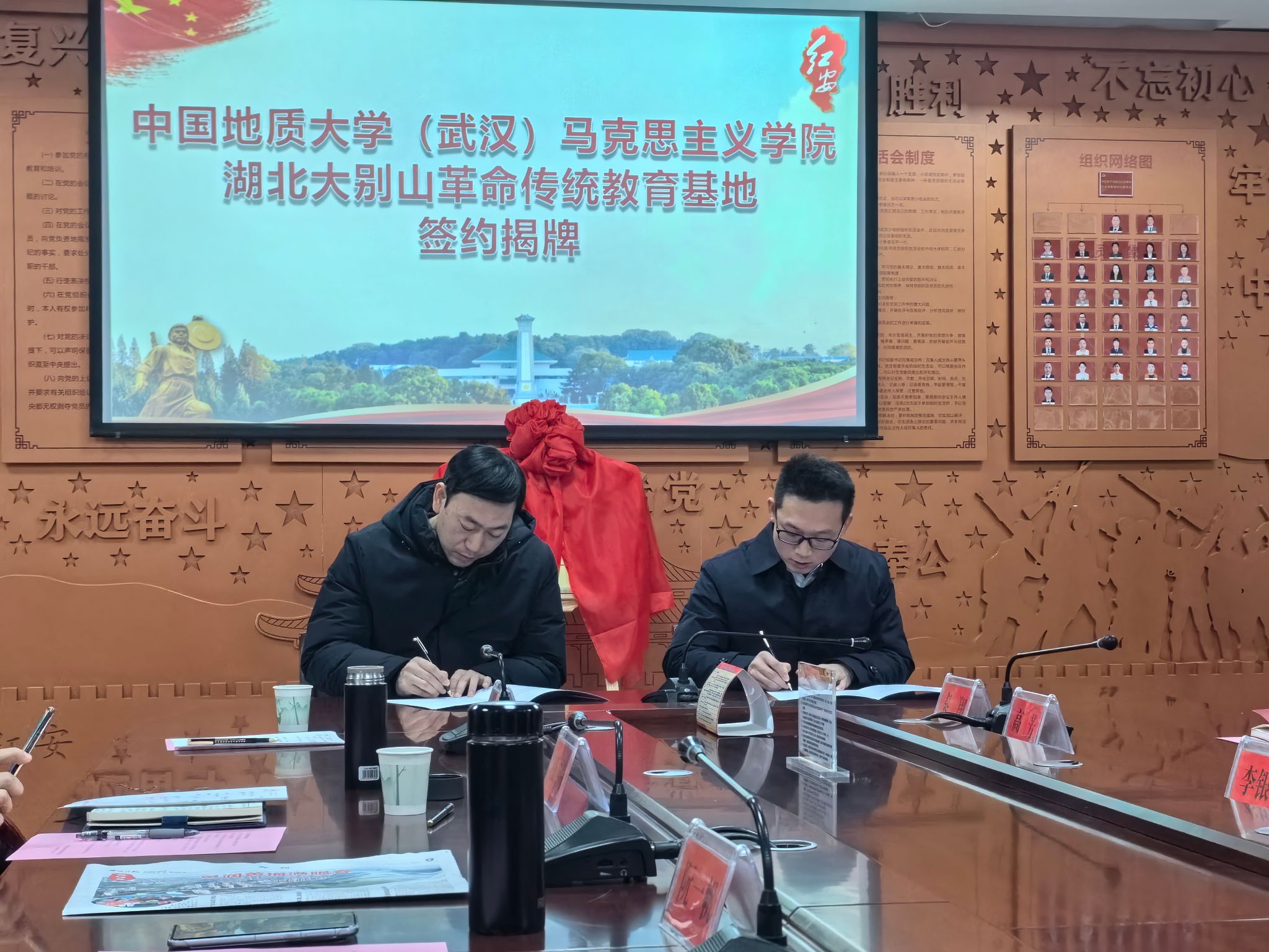 随即,阮一帆、李银飞作为签约代表在双方合作协议上签字,并一同为中国地质大学(武汉)思想政治教育实践基地揭牌。