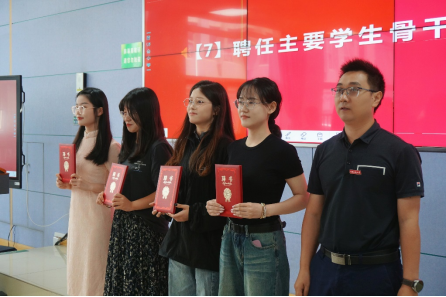 聘任主要学生干部。武彦斌宣读学院党委关于聘任学生干部的文件,汪再奇为2024级学生会、2024级研究生会主席团及2024级党建办主任团学生骨干代表颁发聘书。
