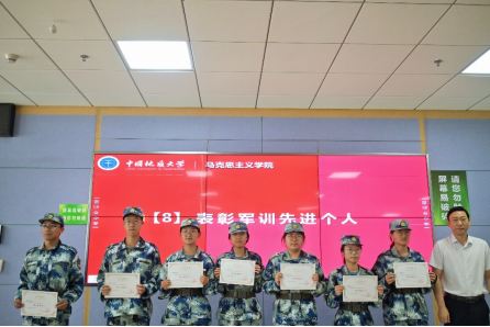 表彰军训先进个人。武彦斌宣读学院关于表彰军训先进个人的文件,阮一帆为军训先进个人颁发荣誉证书。