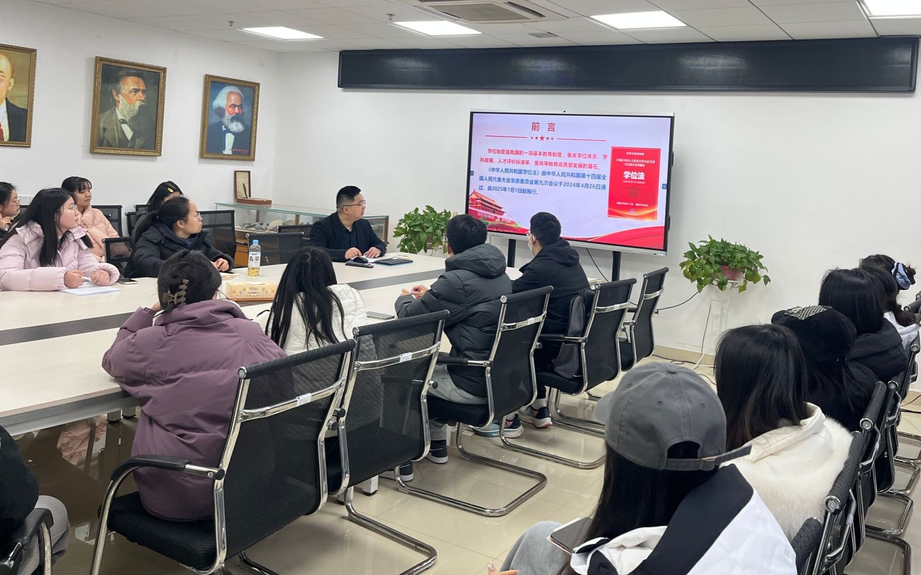 为深入贯彻落实《中华人民共和国学位法》(以下简称《学位法》)暨导师专题培训的工作要求,切实提升学生培养质量,规范学位授予工作,beat365于2025年1月6日-15日分组开展了《学位法》专题学习活动。本次学习活动采用线上线下结合的形式进行。学院领导班子成员、30余名研究生导师和全体研究生参加了专题学习,副院长陈军主持和领学。